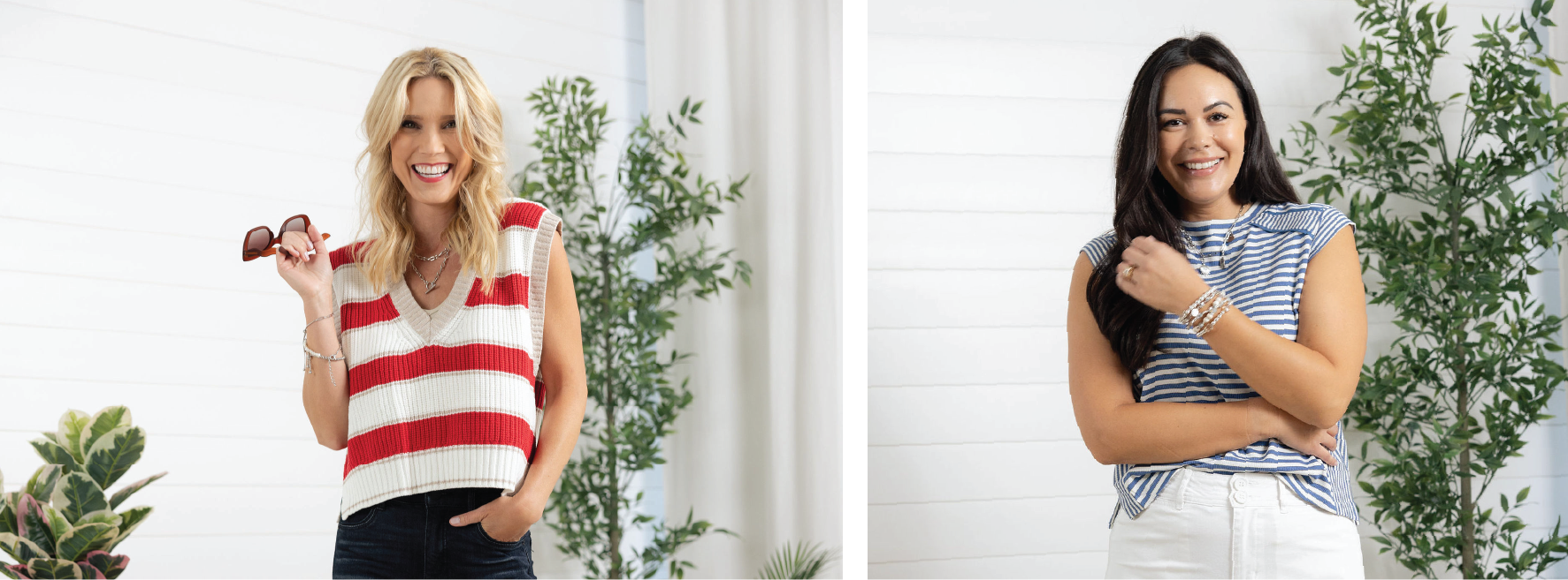 Our exclusive brand, Mac and Me, was created by Mainstream Boutique founder, Marie DeNicola, and inspired by her only daughter, Mac (pictured.) Designed with love, Mac and Marie create every piece of denim, jewelry, tops, jackets and beyond for women of all generations.