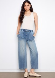 KNIT DENIM WIDE LEG JOGGER PANTS