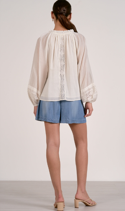 FLOWY TOP WITH RUFFLE COLLAR LACE BACK AND CORD