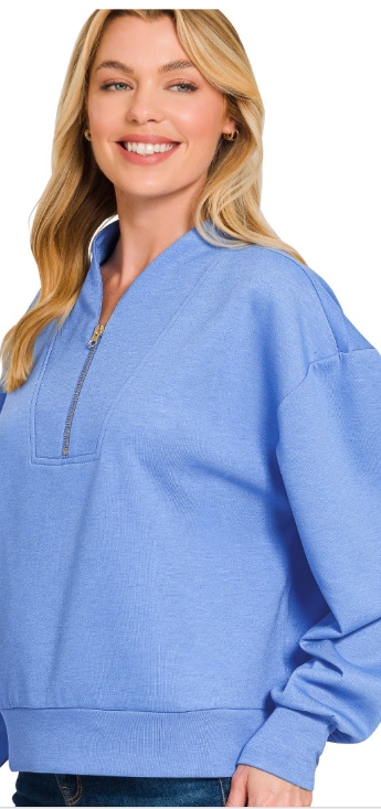 Slip into effortless comfort with our Scuba Half Zip Pullover, designed for those who refuse to compromise on style or flexibility. The soft, stretchy fabric moves with you throughout your day, offering a relaxed fit that feels as good as it looks.