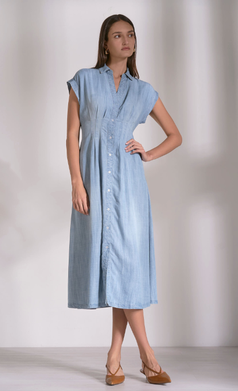 DENIM DRESS WITH MIDI CAP SLEEVES